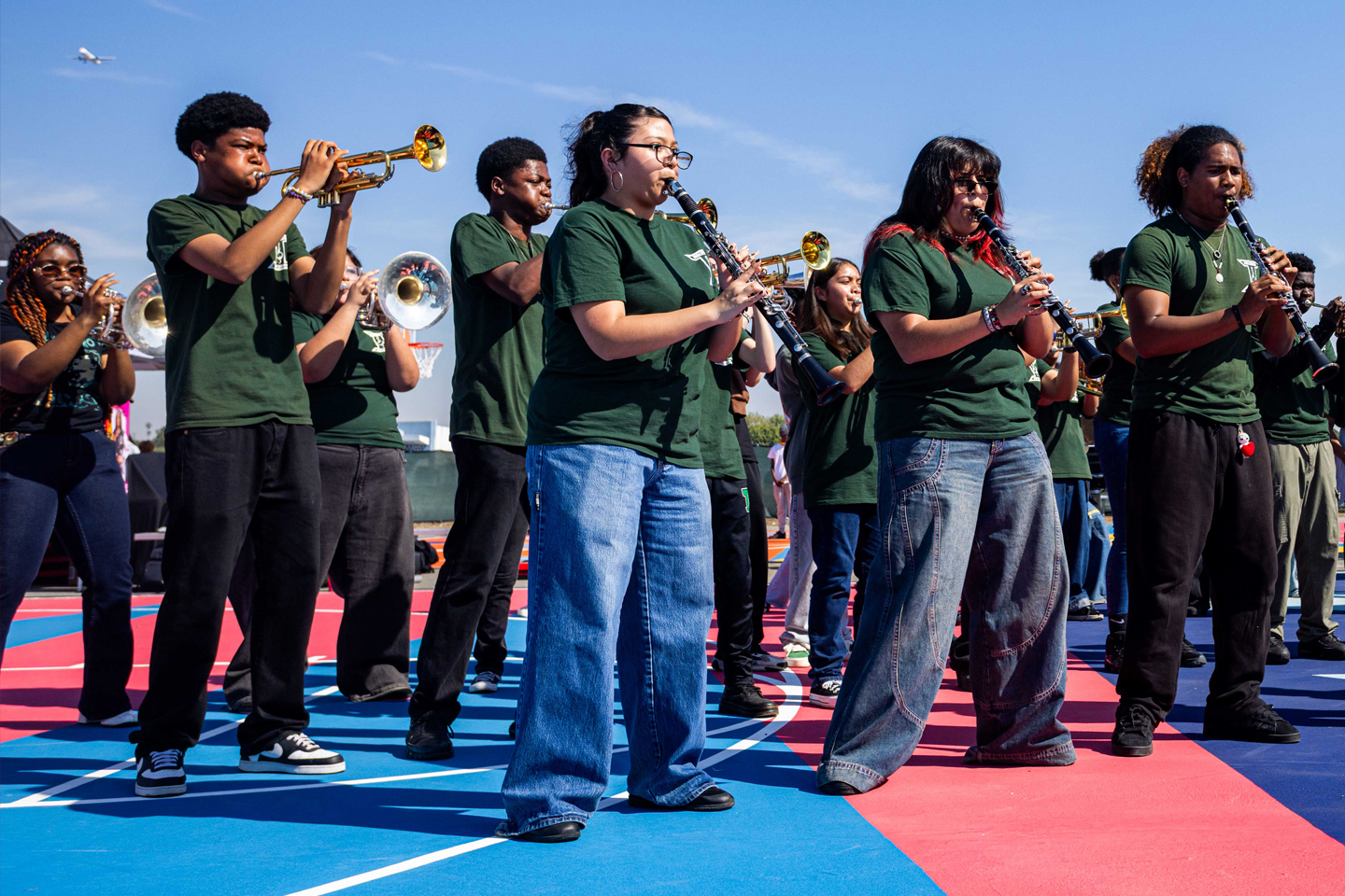 The award-winning school marching band moved through the site, performances unfolded, and the energy built throughout the day. The courts became more than a place to play, holding sound, movement, and shared attention.