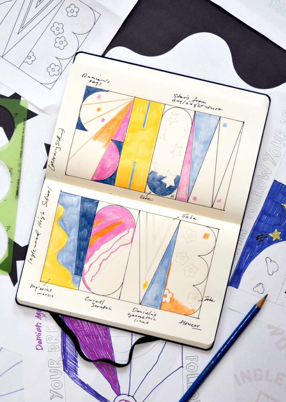 Elements from the workshop were carried into the design. Forms like stars, flowers, and graphic marks were refined and integrated to align with the overall visual language.