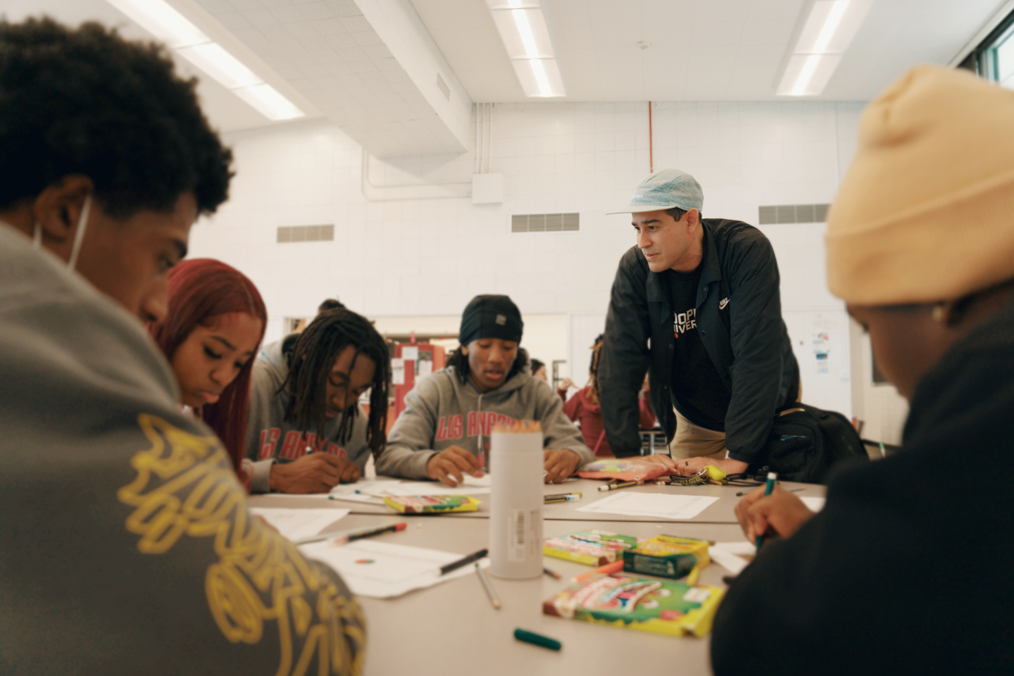 At Inglewood High School, a program with a deep basketball legacy, two full courts were transformed into a permanent installation. The project was shaped through direct work with students, and translated through my visual language, grounded in the energy, movement, and culture of the game.