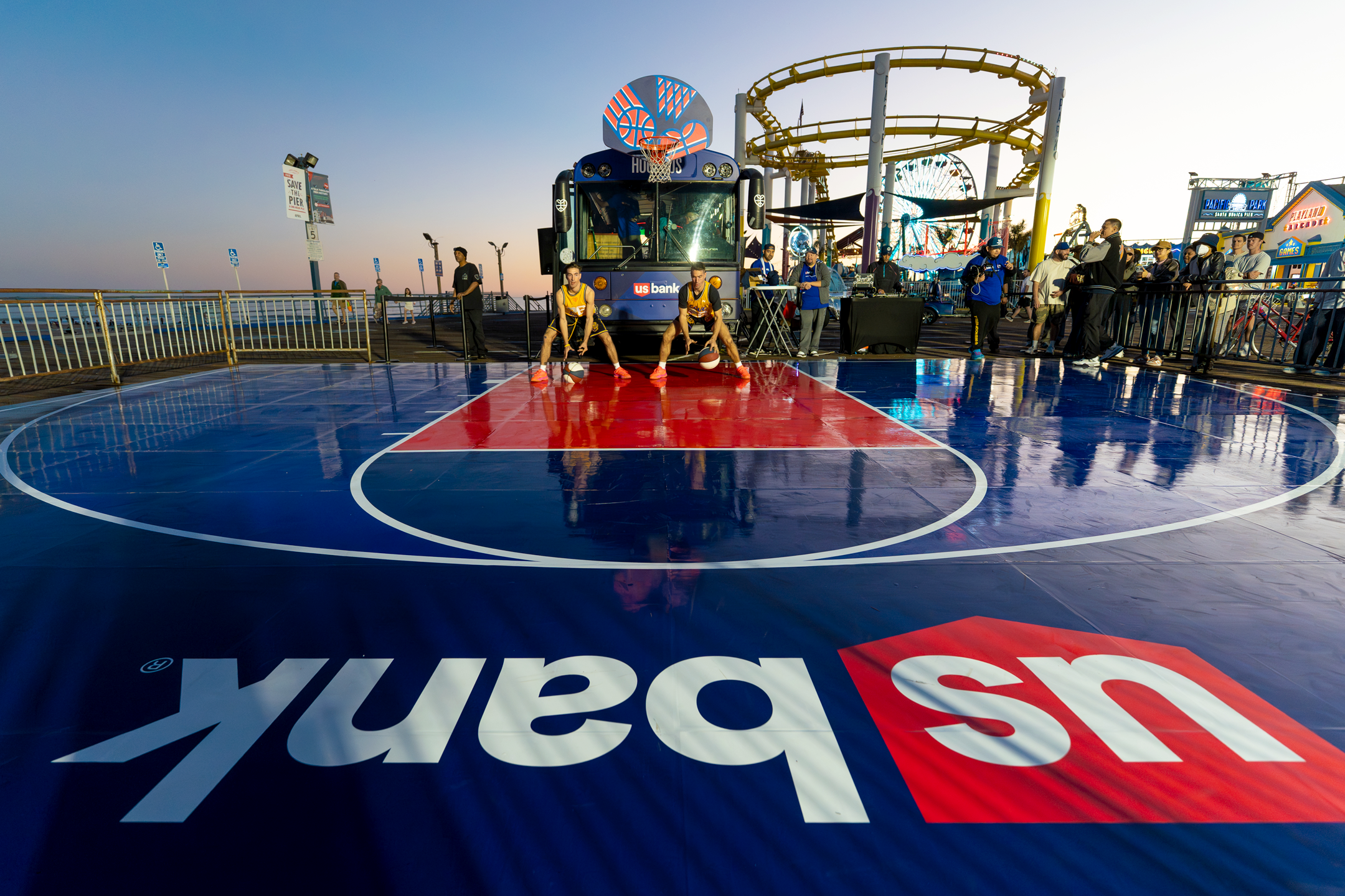 Some were integrated into the core system, with brands like Skechers and Metro by T-Mobile appearing across the bus, banners, and event materials. Others operated in parallel. US Bank extended into its own visual lane, with a dedicated court, apparel, and campaign materials.